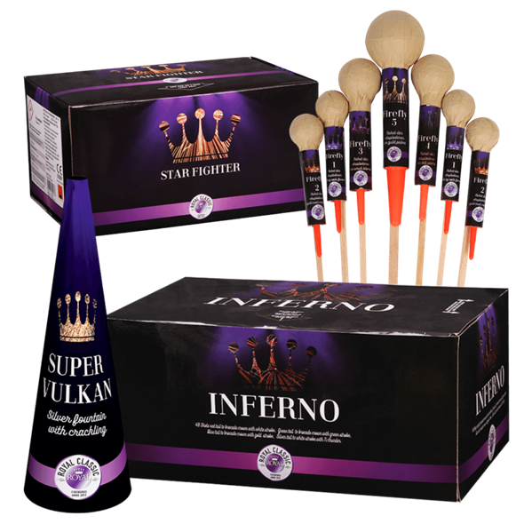 1 stk. Star Fighter – 21 skuds batteri 1 stk. Super Vulkan fontæne 1 stk. Inferno – 48 skuds batteri 1 stk. Firefly raketsortiment *Bemærk at i forvejen nedsatte produkter ikke udløser bonusprodukter